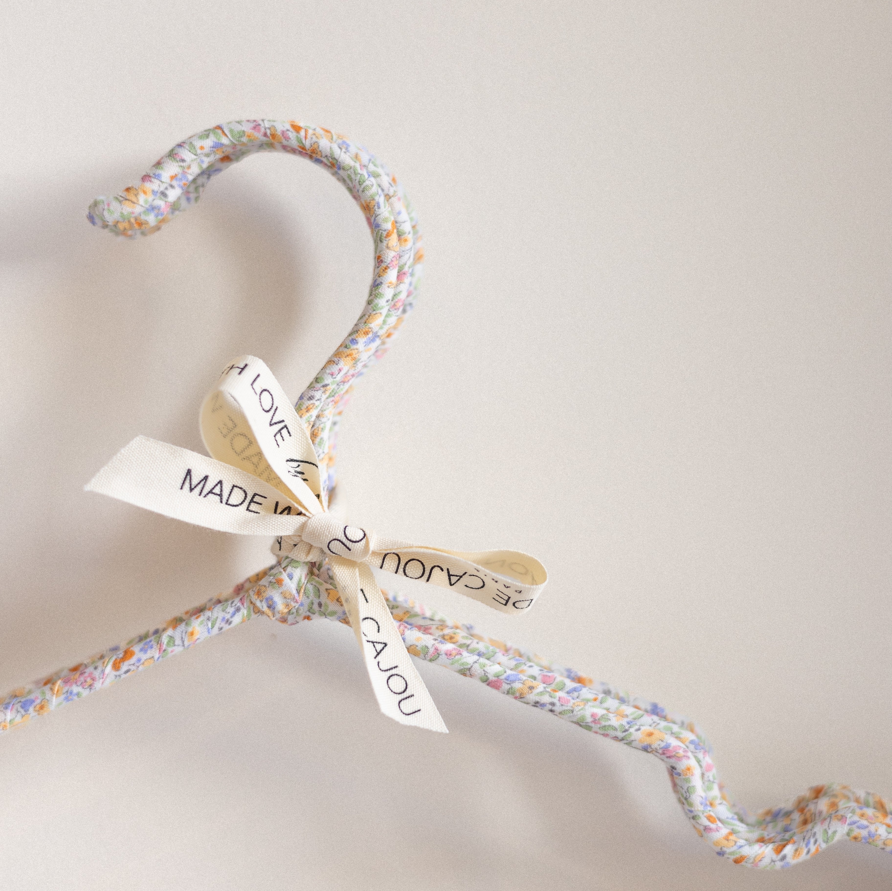This is an UPCYCLE product: as we are a responsible brand, we limit waste as much as possible. These hangers are made with fabric shoots from our production.