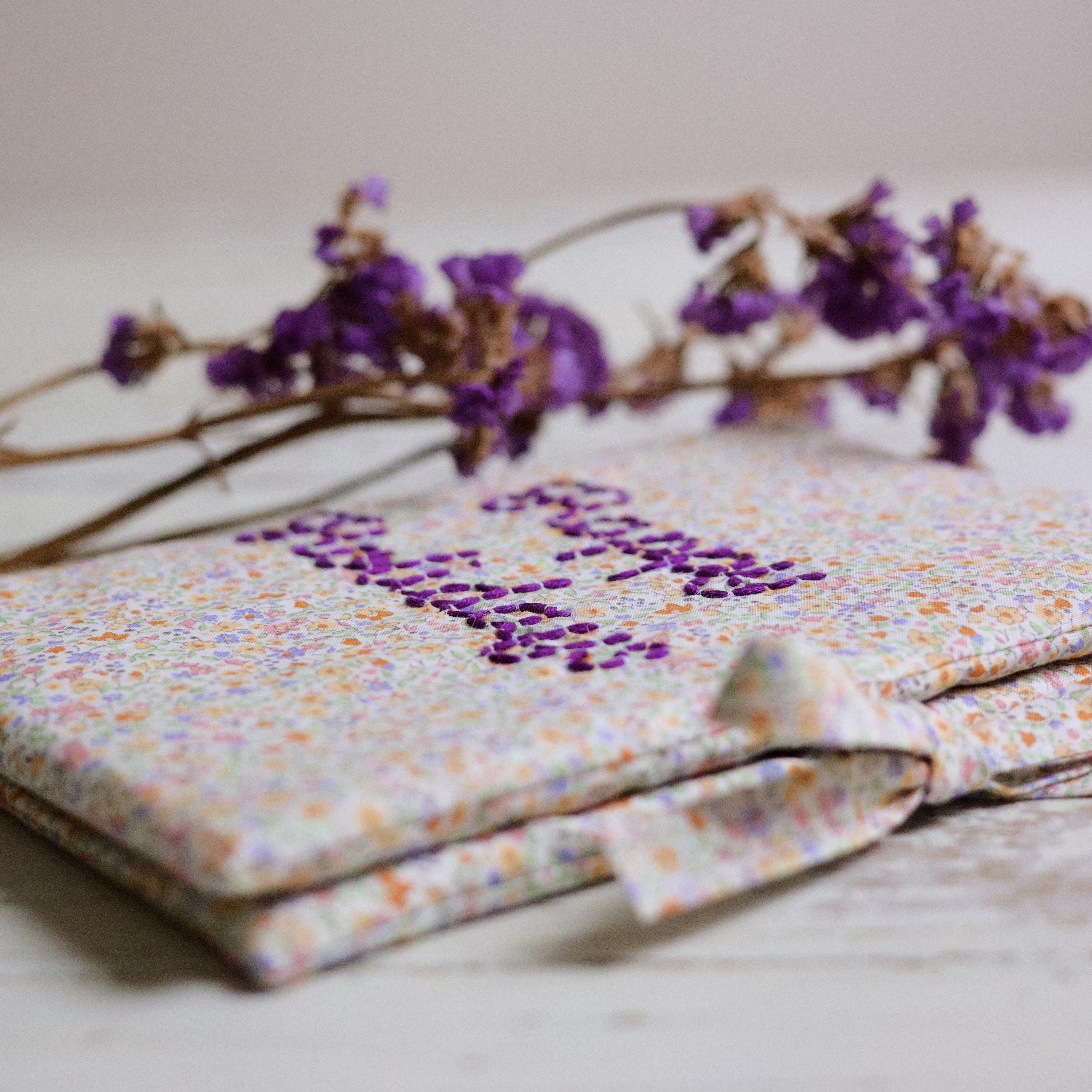 The health book covers allow you to cover the French health book and/or store important papers. They are hand-embroidered and handcrafted in our own atelier using organic cotton fabrics that are Oeko-Tex certified. You can personalise your health book with a name, word, or initials in your favorite colour!