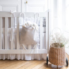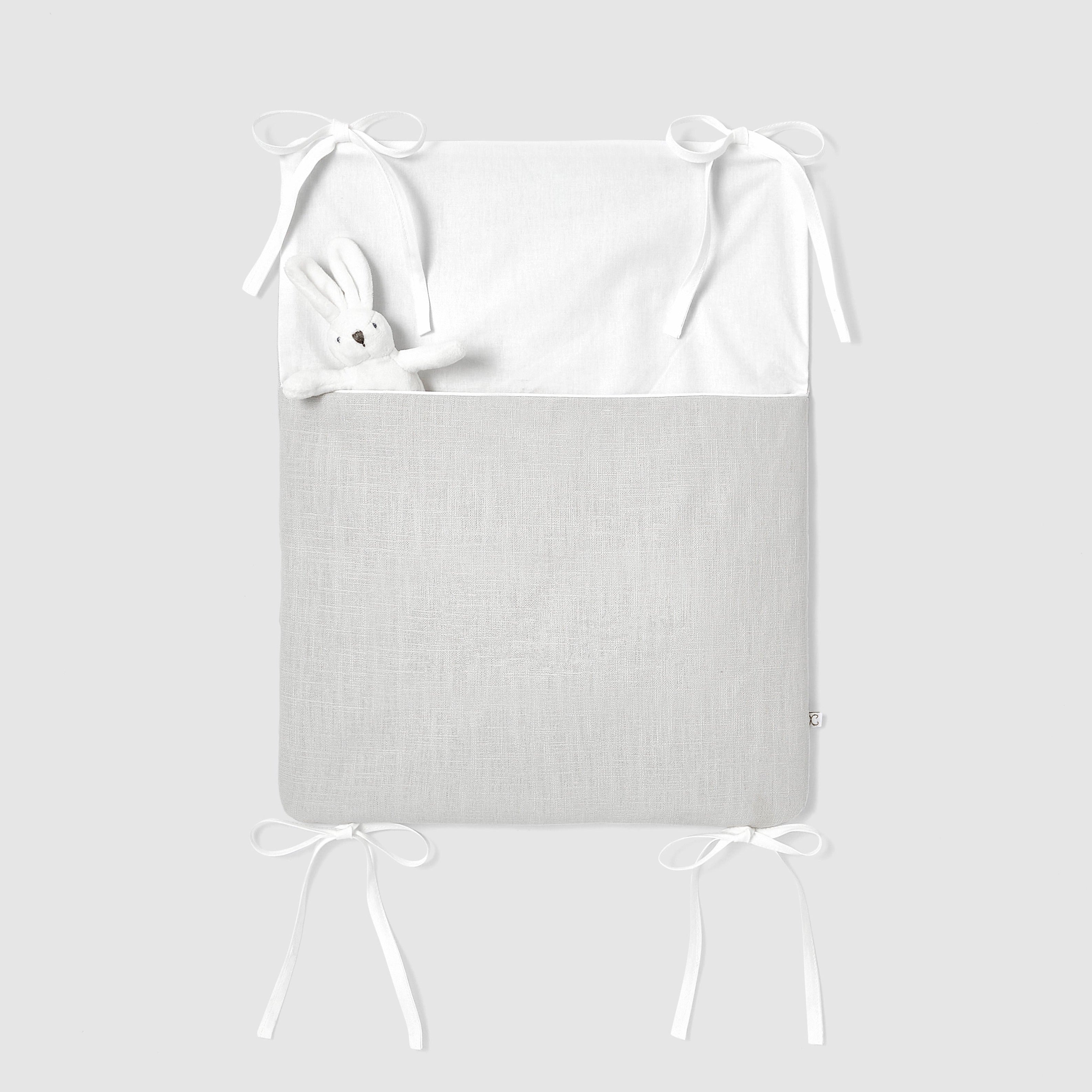 Tidy away baby’s soft toys, pyjamas or other small belongings in this linen cot pocket.