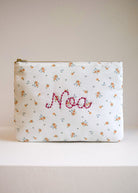 This zipped pouch is hand embroidered in our atelier. The fabrics used are organic and Oeko-Tex certified. You can personalise your pouch with a name or with initials in your favorite color!