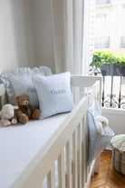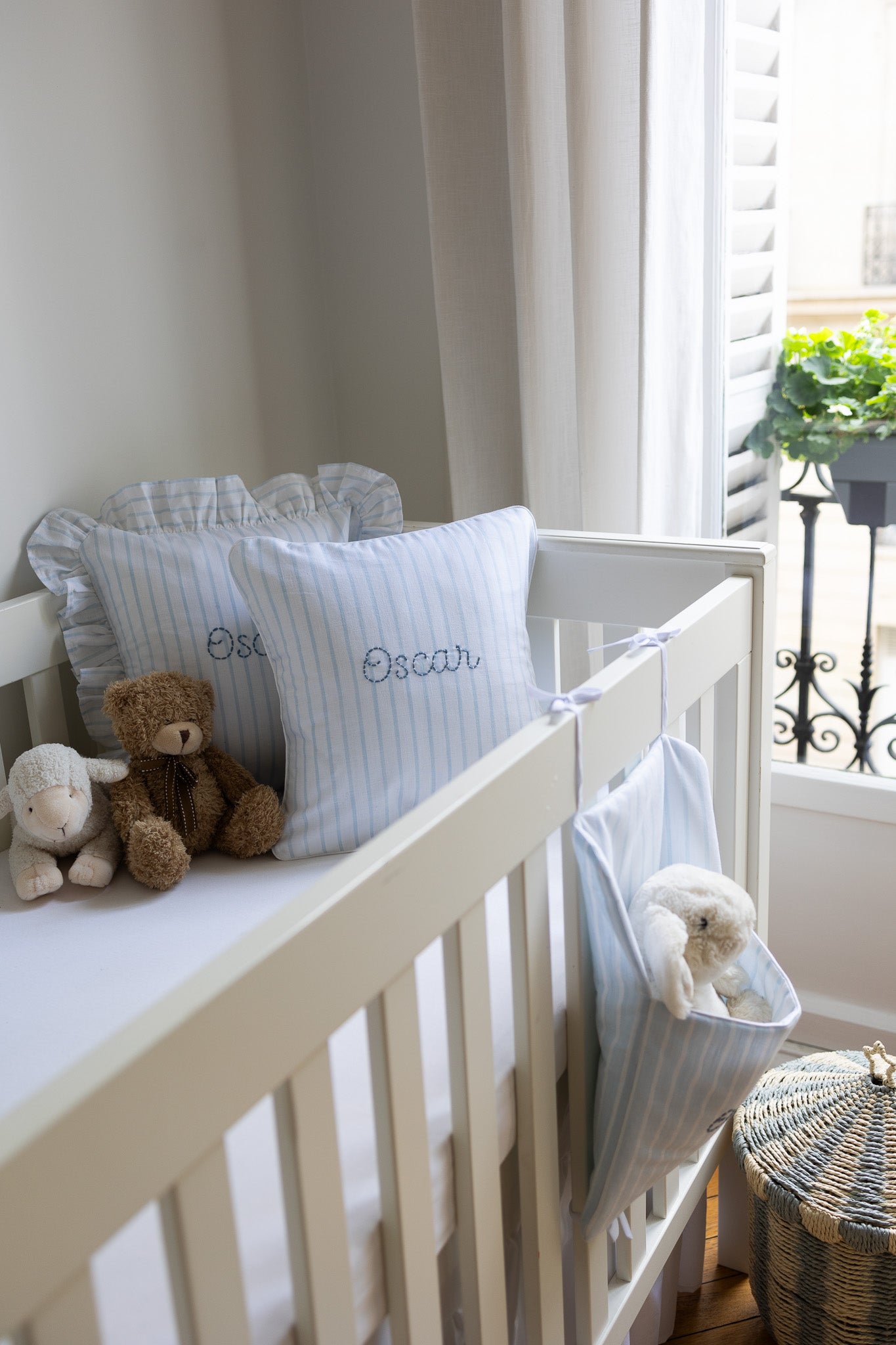 The embroidery is handmade in our own atelier in Portugal by our experienced and specialised embroiderers. You can personalise your item with a name, word, or initials in your choice of color. For reference, the embroidery color shown in the pictures is 'Blue Jeans'.