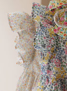 Dress in 100% organic cotton, perfect for all summer casual and more formal occasions. It features a pleated style with ruffled straps. The dress is buttoned up at the back.