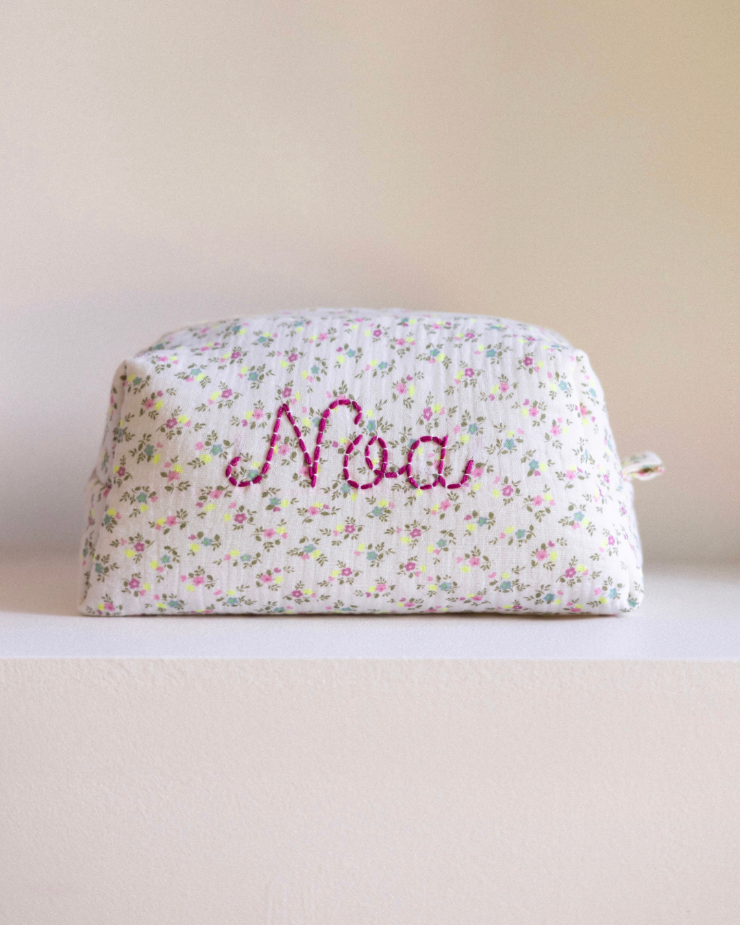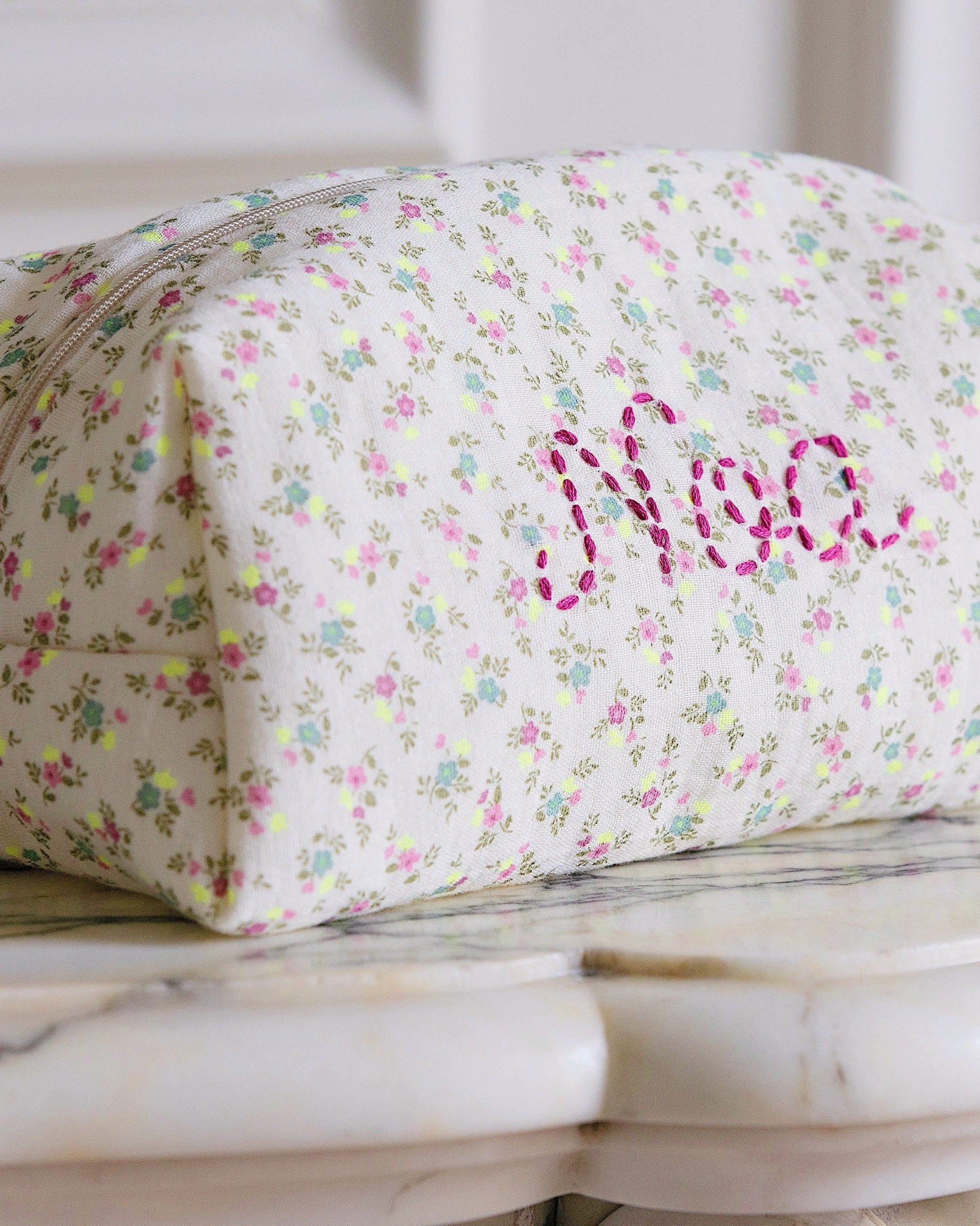 You can choose a name, a cherished nickname, initials, or a heartfelt word - whatever transforms this toiletry bag into a uniquely yours treasure or a cherished gift.