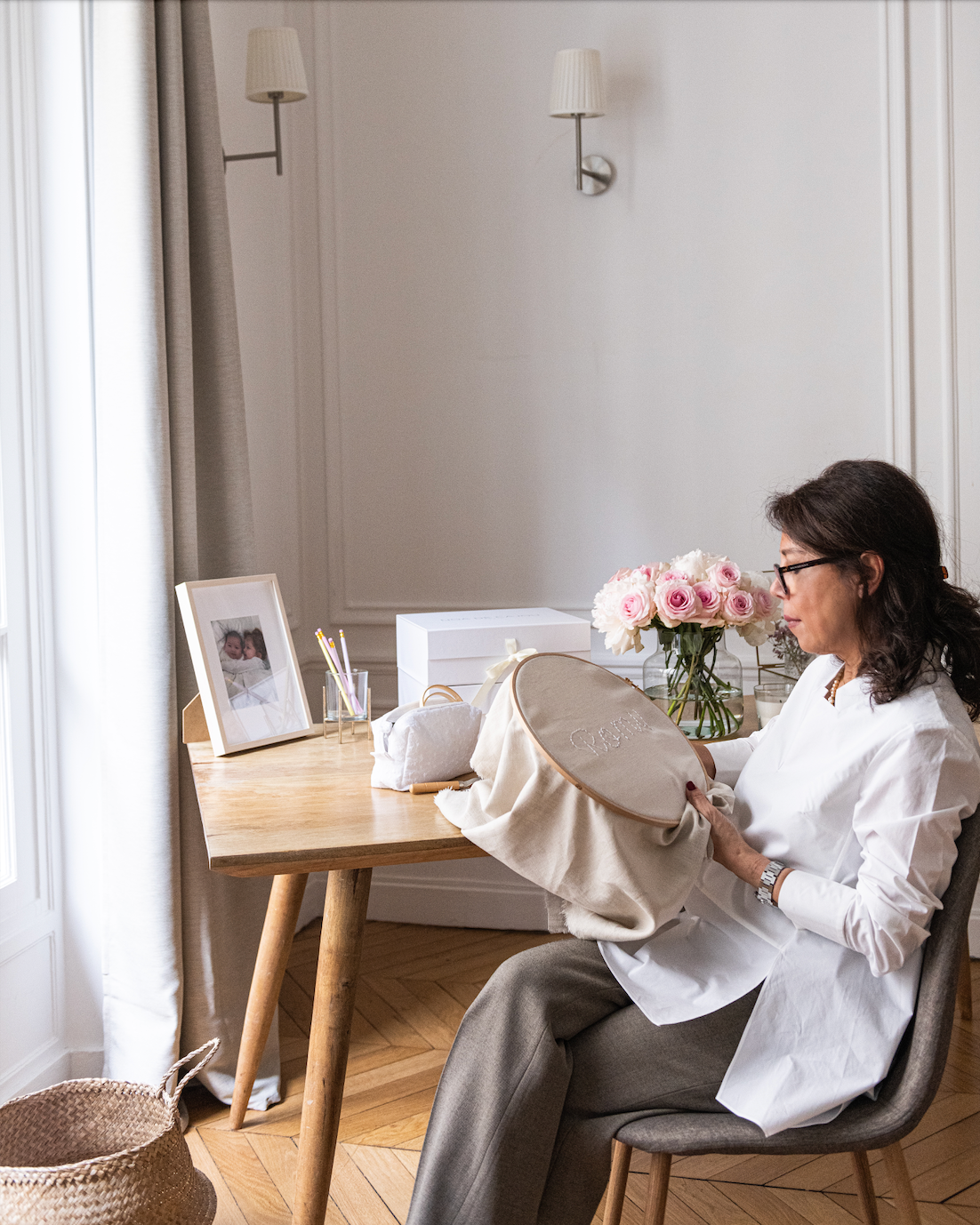 It is in our Parisian atelier that we personalise your products, crafting each piece to be unique according to your wishes through hand-embroidery.