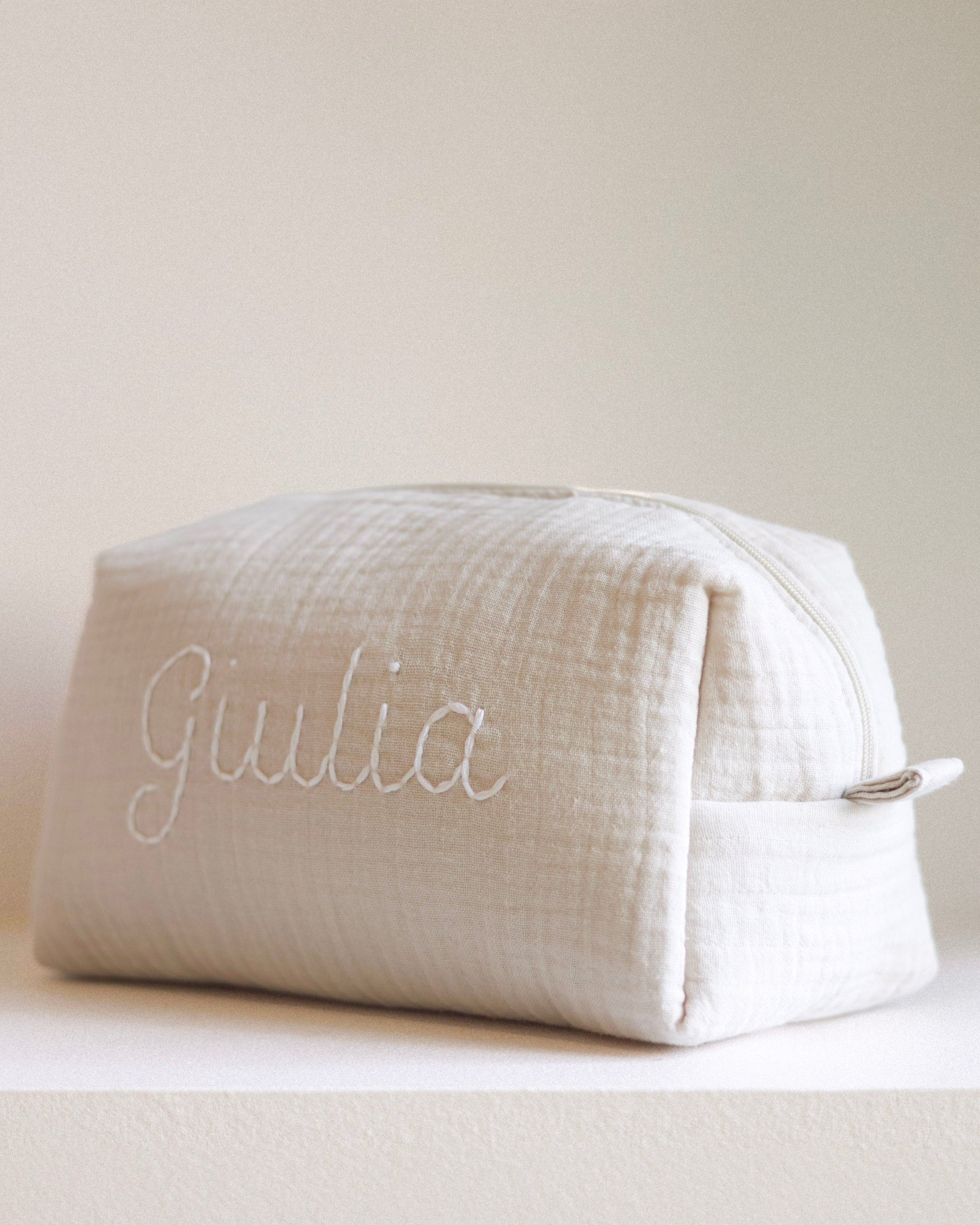 You can choose a name, a cherished nickname, initials, or a heartfelt word - whatever transforms this toiletry bag into a uniquely yours treasure or a cherished gift.