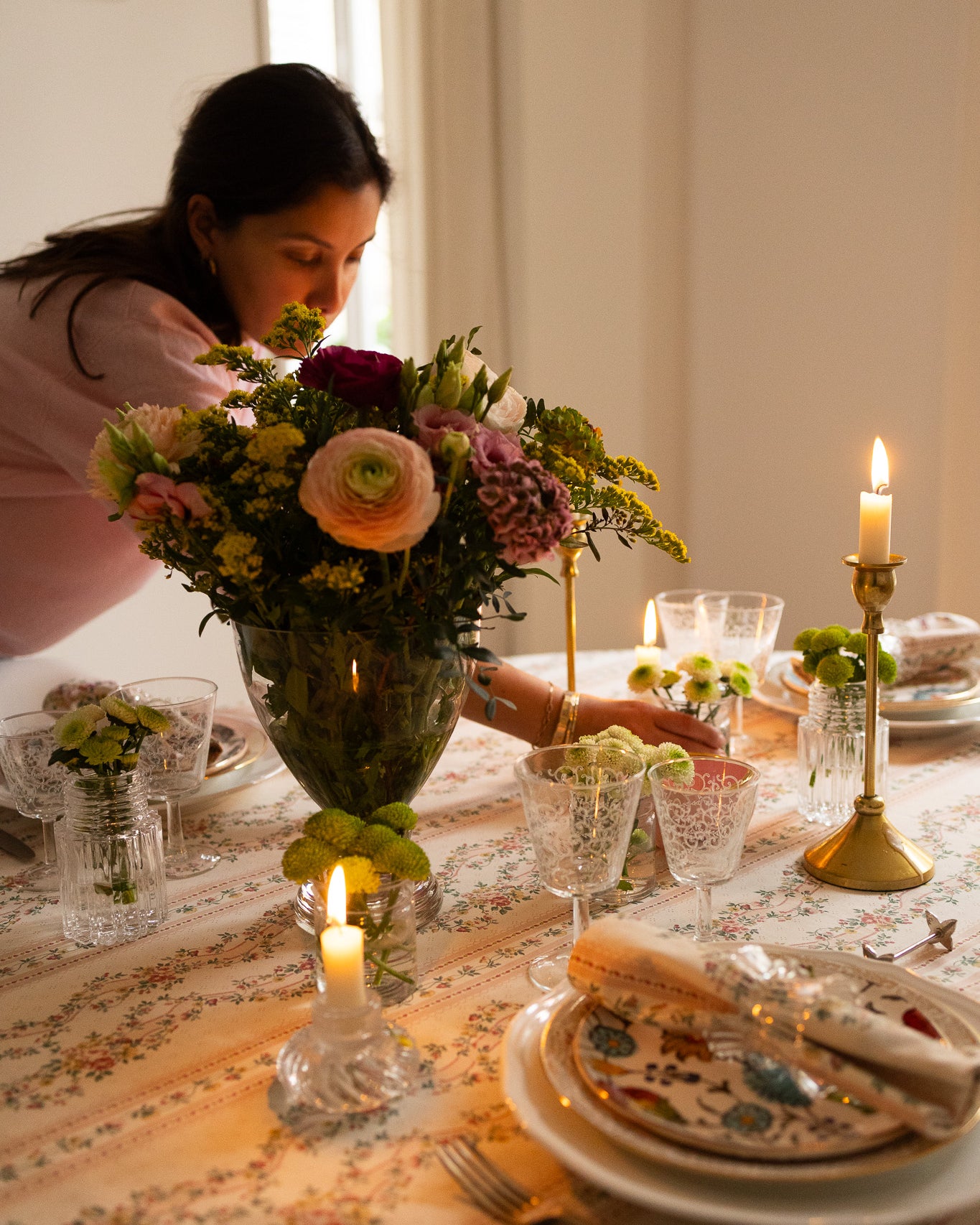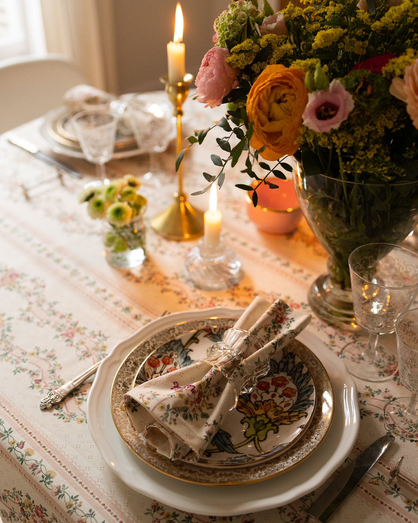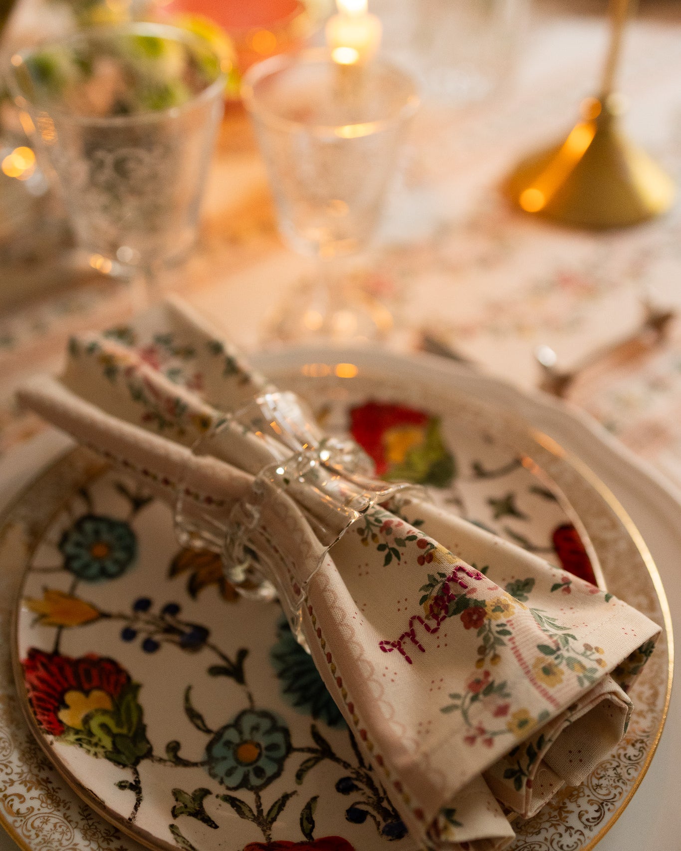 This napkin is the perfect finishing touch to elevate your table setting and matches with it's tablecloth. Crafted from 100% Oeko-Tex certified cotton, it features a romantic floral pattern in soft pastel tones - beautifully inspired by an antique quilt discovered in the Ribatejo region of Portugal.