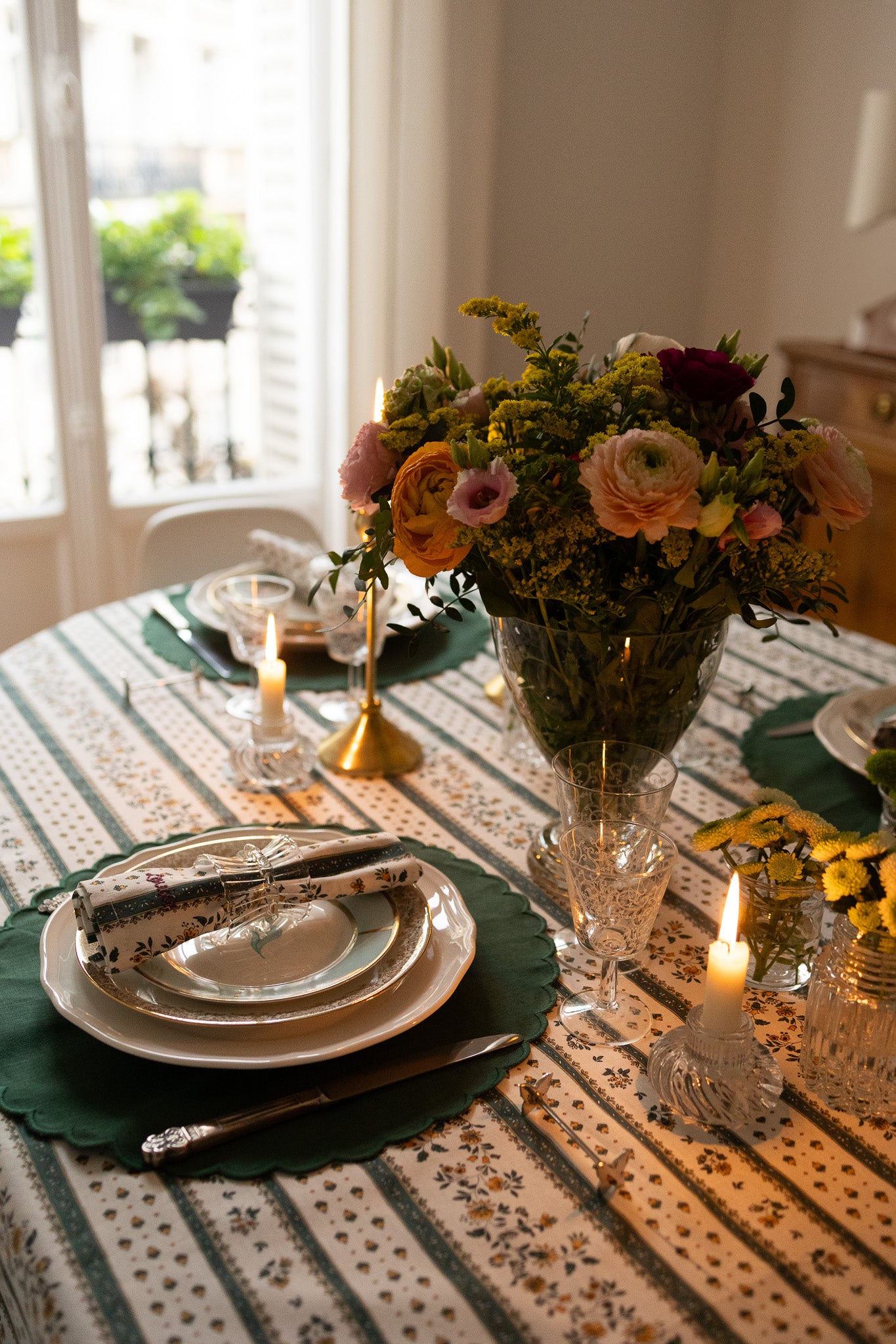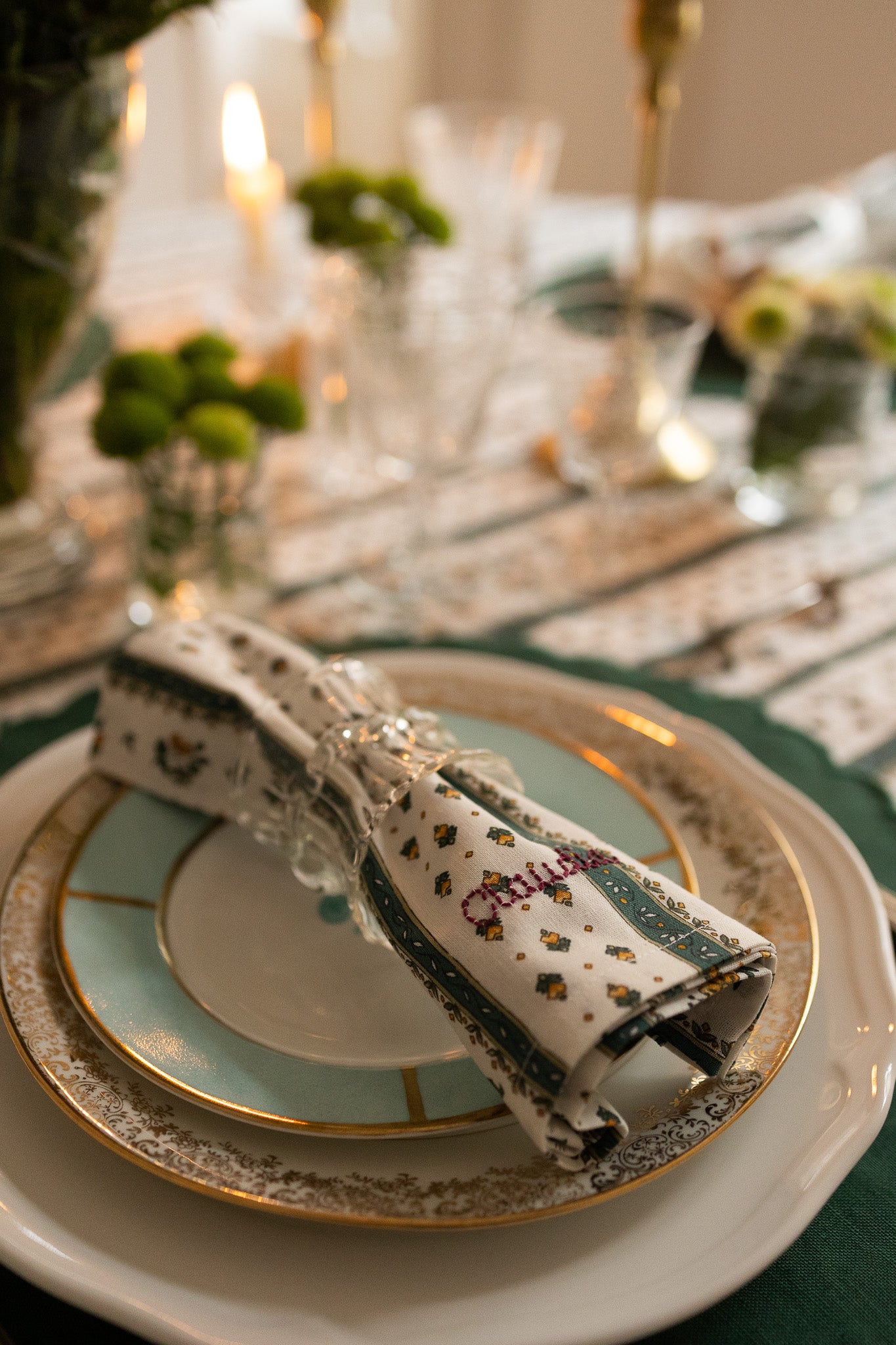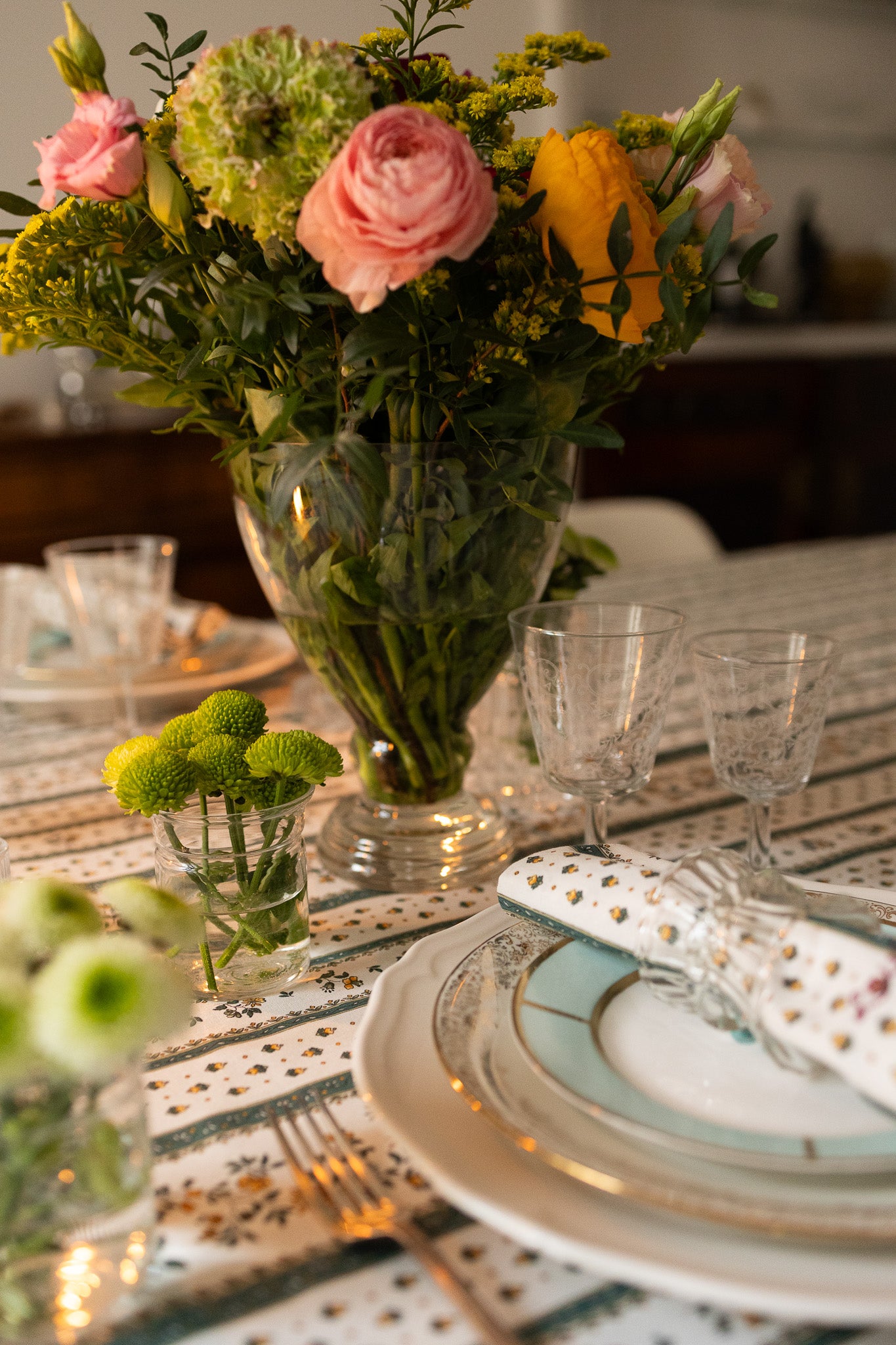 This napkin is the perfect finishing touch to elevate your table setting and matches with it's tablecloth. Crafted from 100% Oeko-Tex certified cotton, it features green stripes and yellow flowers.