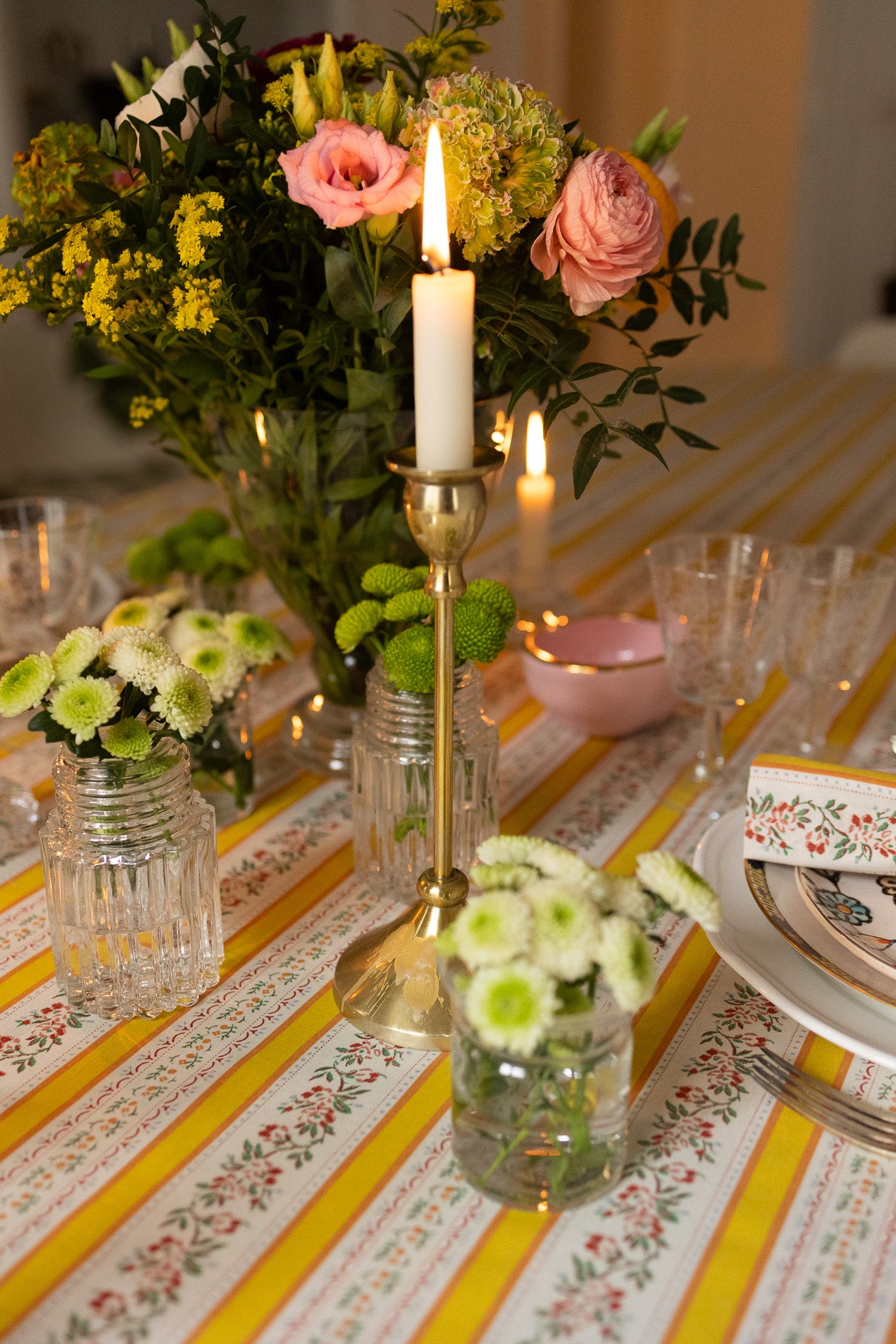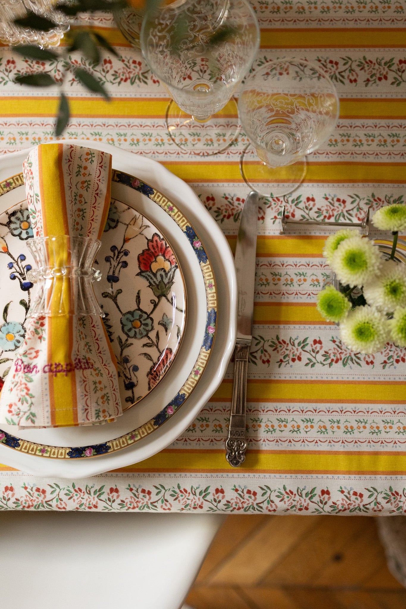 This napkin is the perfect finishing touch to elevate your table setting and matches with it's tablecloth. Crafted from 100% Oeko-Tex certified cotton, it features yellow stripes and flowers.