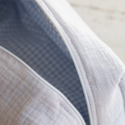 The toiletry bag is hand-embroidered in our own atelier. The fabric is an organic double gauze cotton and Oeko-Tex certified. You can personalise your toiletry bag with a name, word, or initials in your favourite colour!