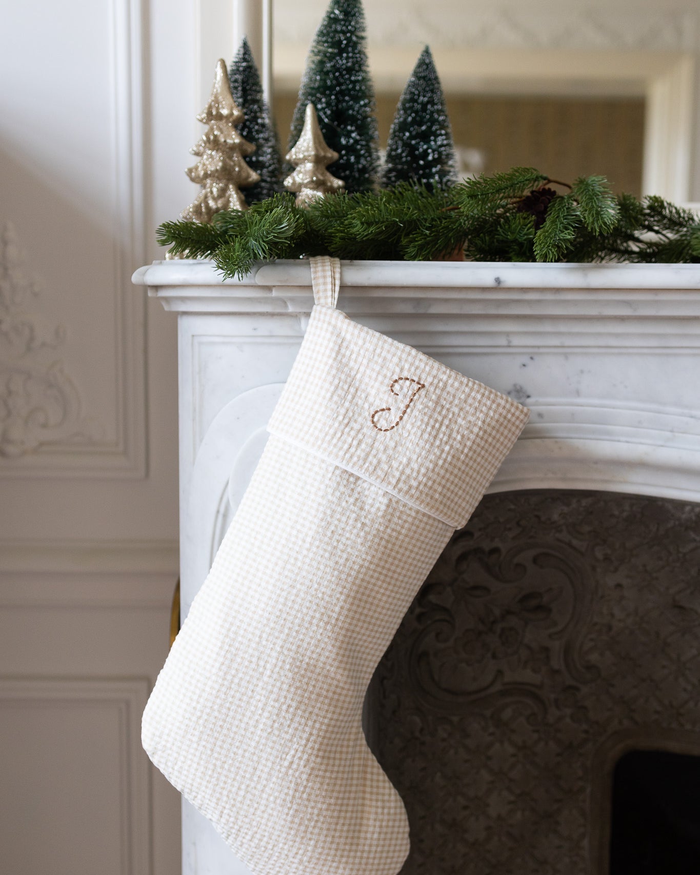 Chaussette de Noël - Vichy beige