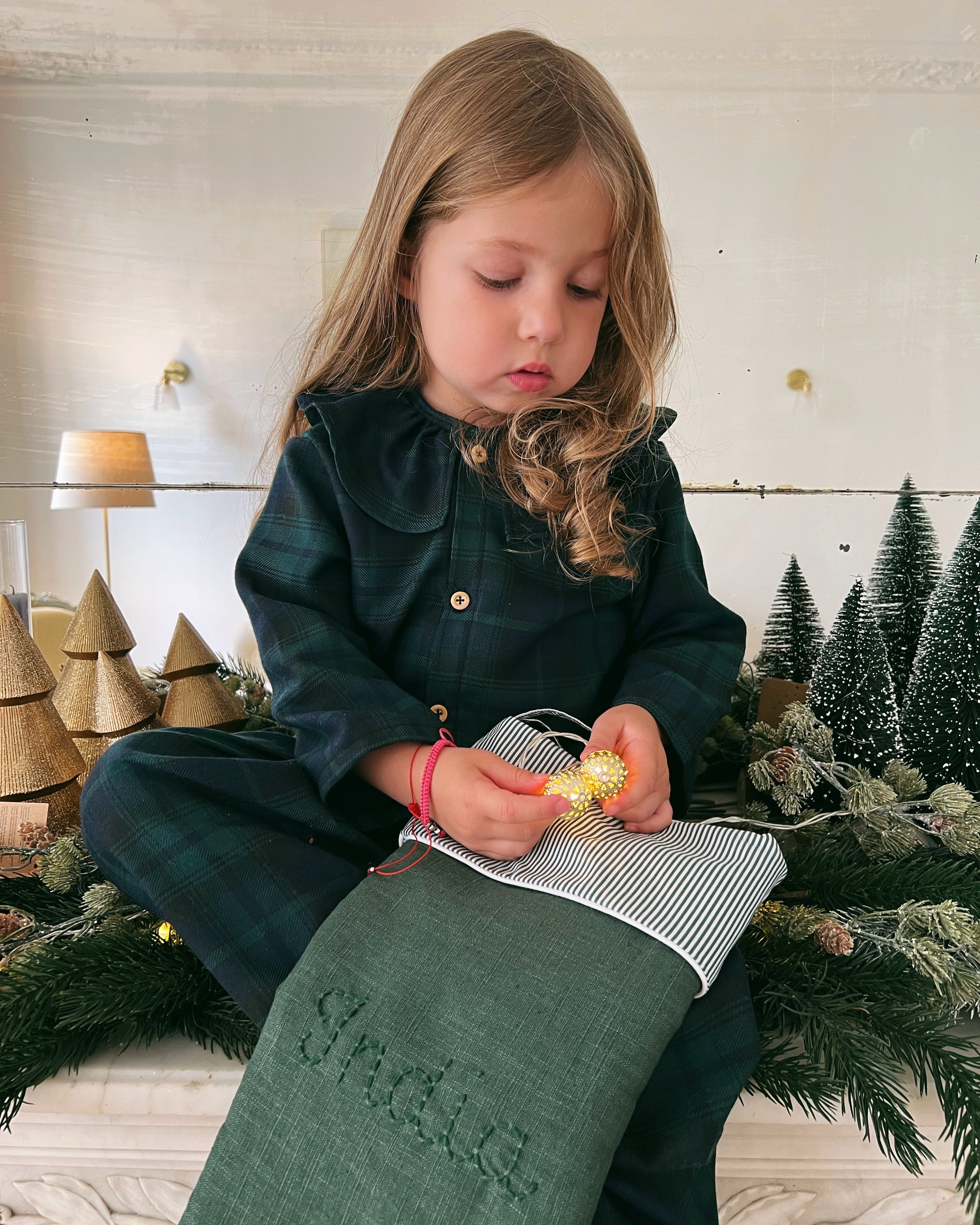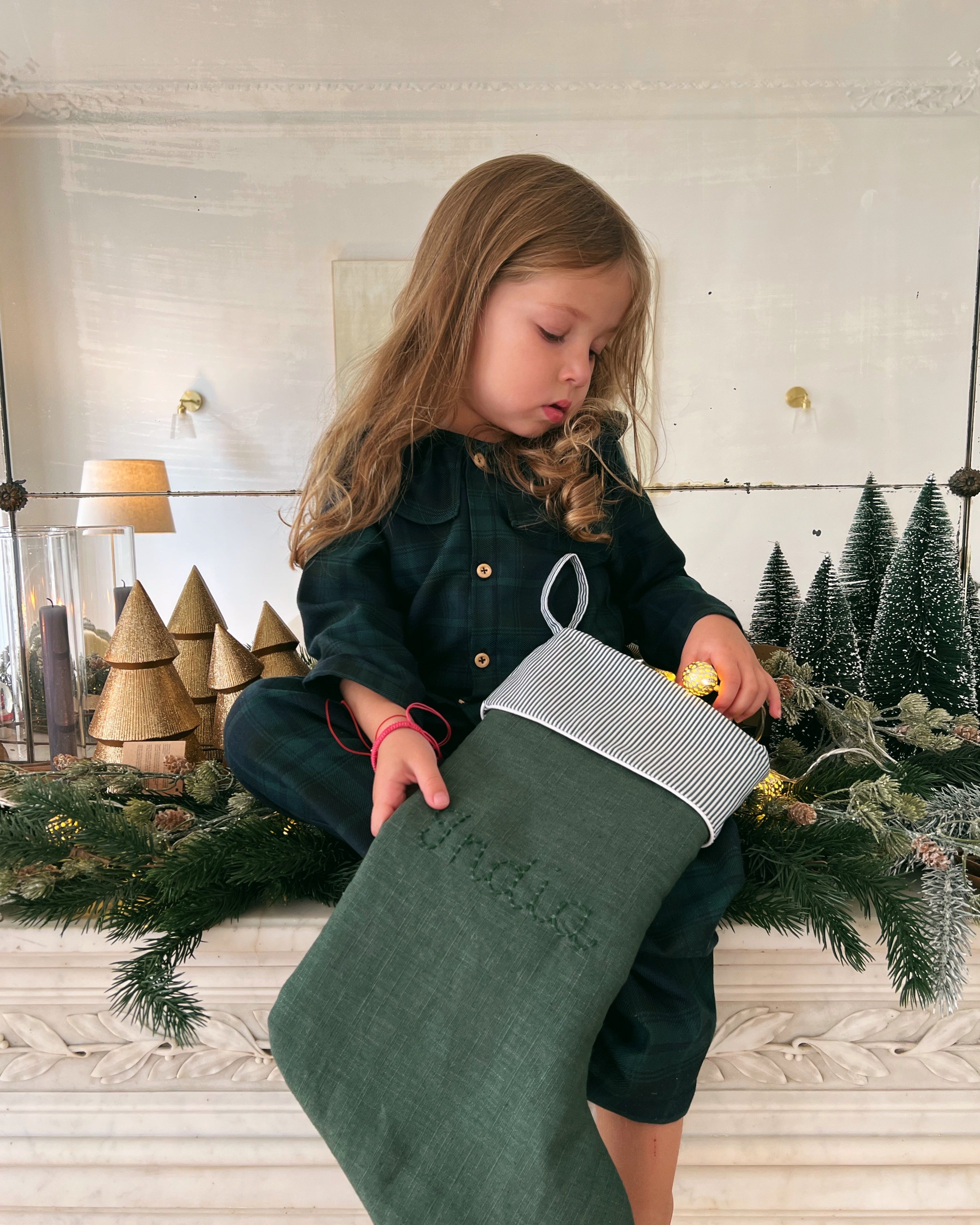 Chaussette de Noël - Vichy Vert foncé