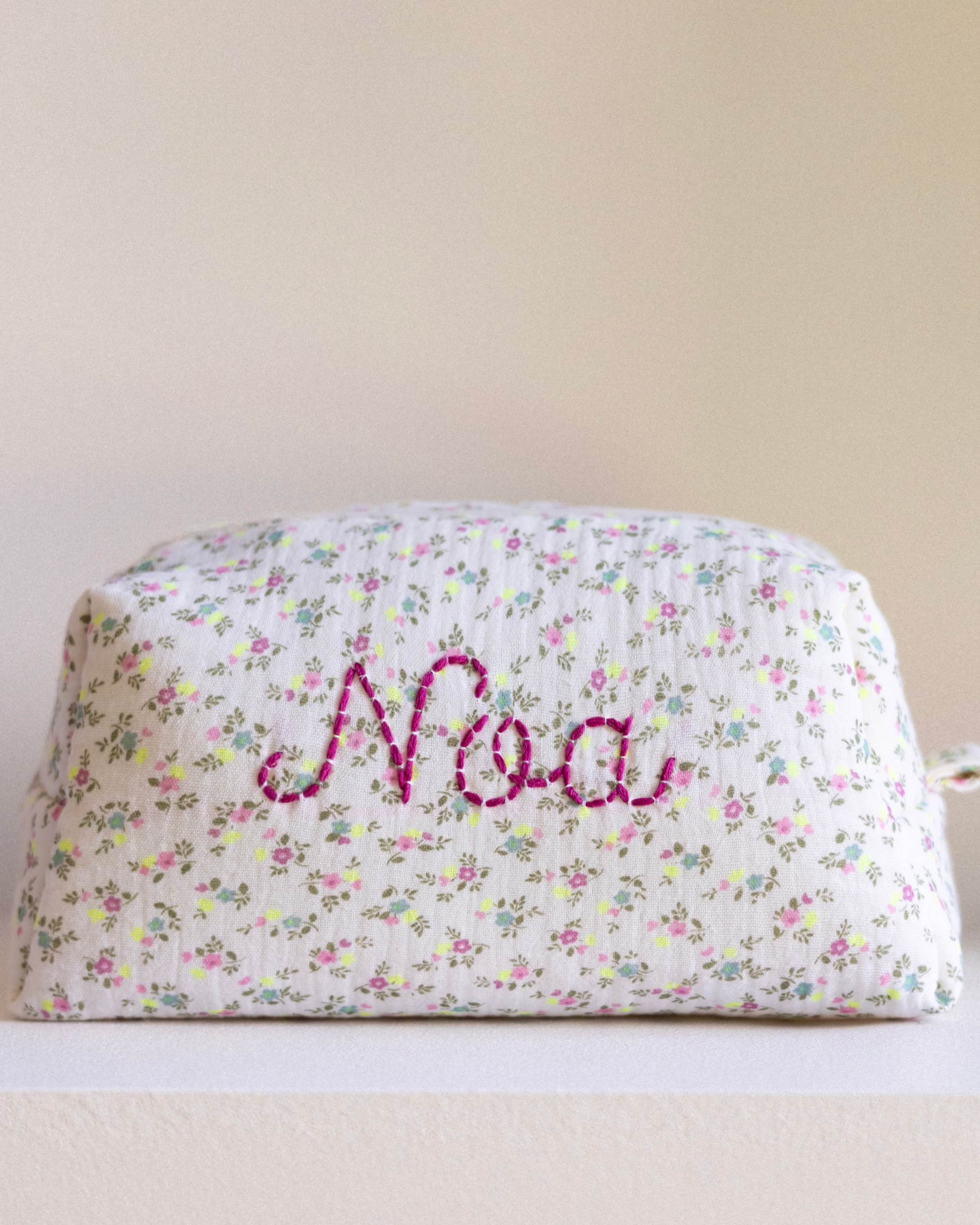 Vous pouvez choisir un nom, un surnom qui vous est cher, des initiales ou tout simplement un mot - tout ce qui transformera cette trousse de toilette en un trésor unique ou un cadeau précieux.