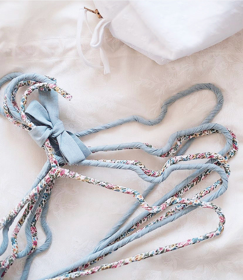 This is an UPCYCLE product: as we are a responsible brand, we limit waste as much as possible. These hangers are made with fabric shoots from our production.
